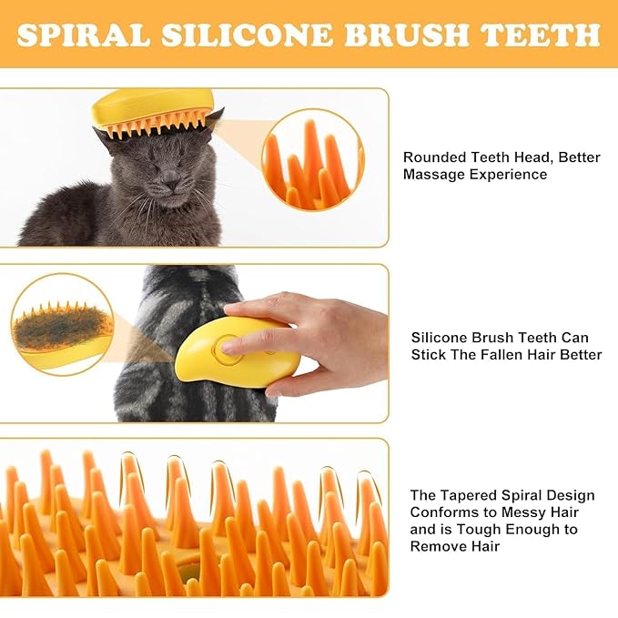 Introducing SteamPurr™, the ultimate 3-in-1 grooming tool for your beloved pets. This versatile brush combines the power of steam cleaning with gentle grooming to keep your pet’s coat soft, clean, and free from loose hair. Designed for both cats and dogs, the SteamPurr™ is perfect for daily grooming sessions, making it easier than ever to maintain your pet’s hygiene and coat health.